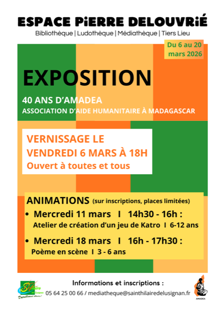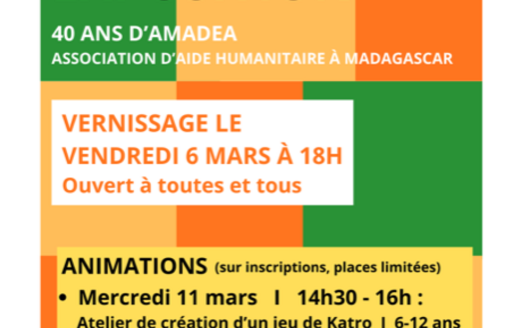 Exposition proposée par l'association AMADEA Enfance et développement à Madagascar. Rendez-vous à l'espace Pierre Delouvrié à Saint Hilaire de Lusignan !